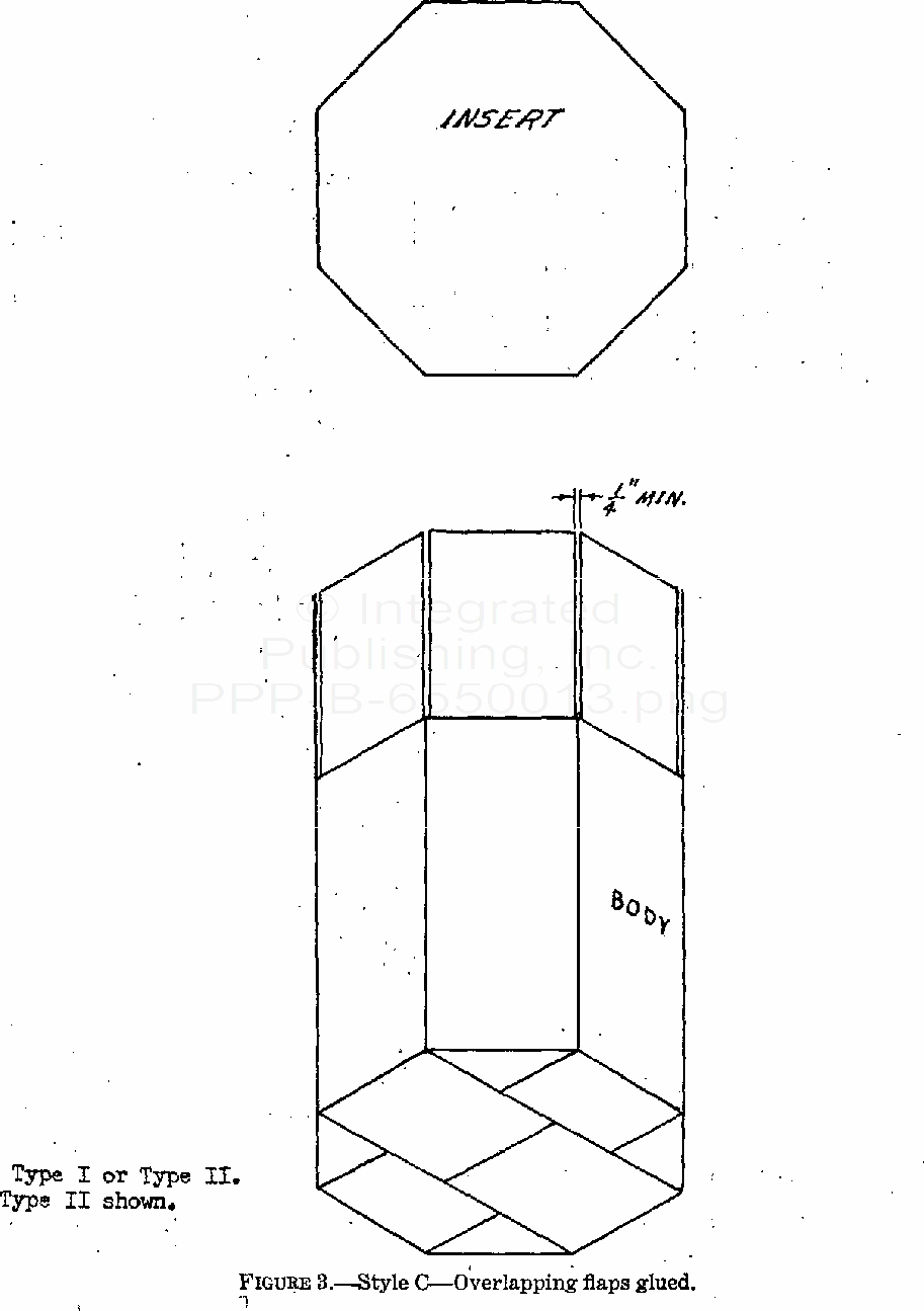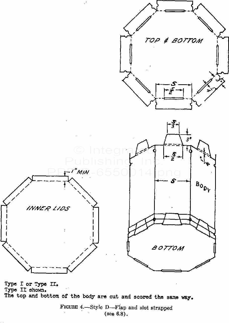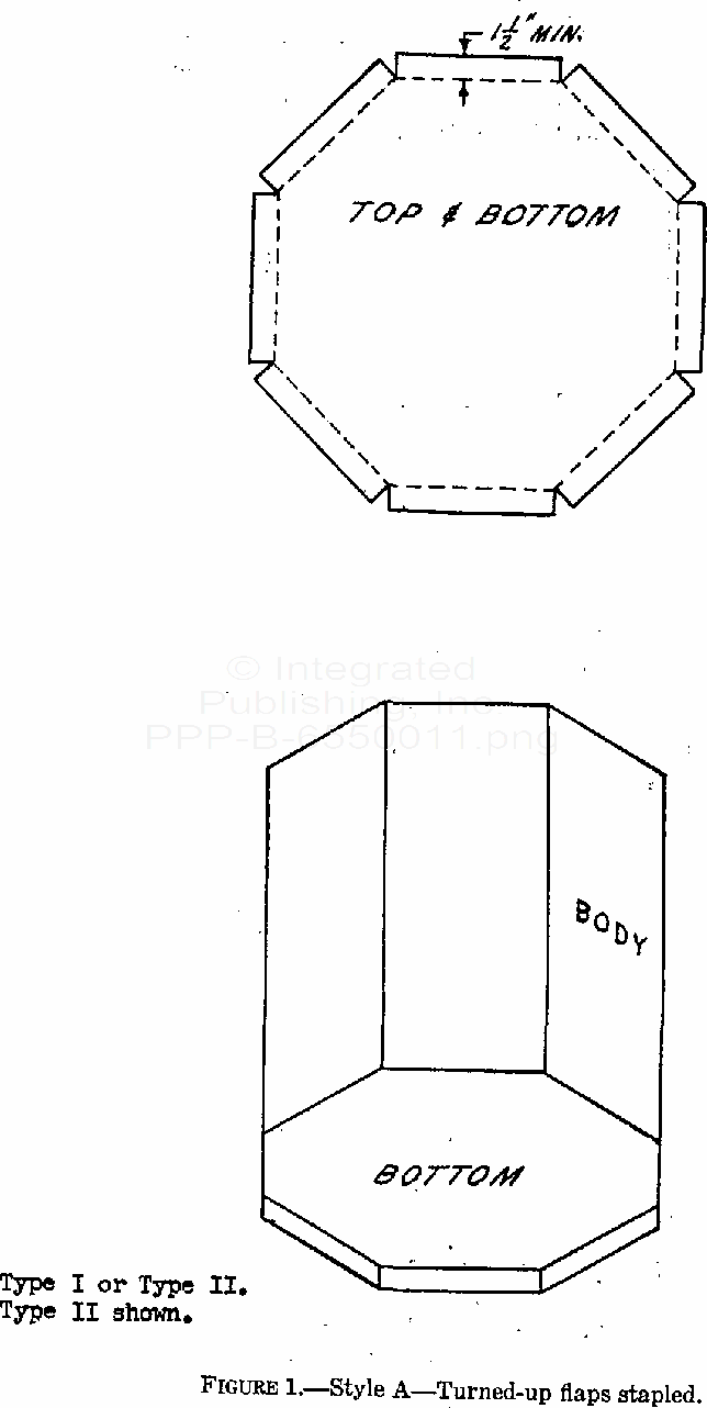 This specification covers seven styles of corrugated fiberboard boxes with six or eight sides, for use in domestic shipment of supplies.